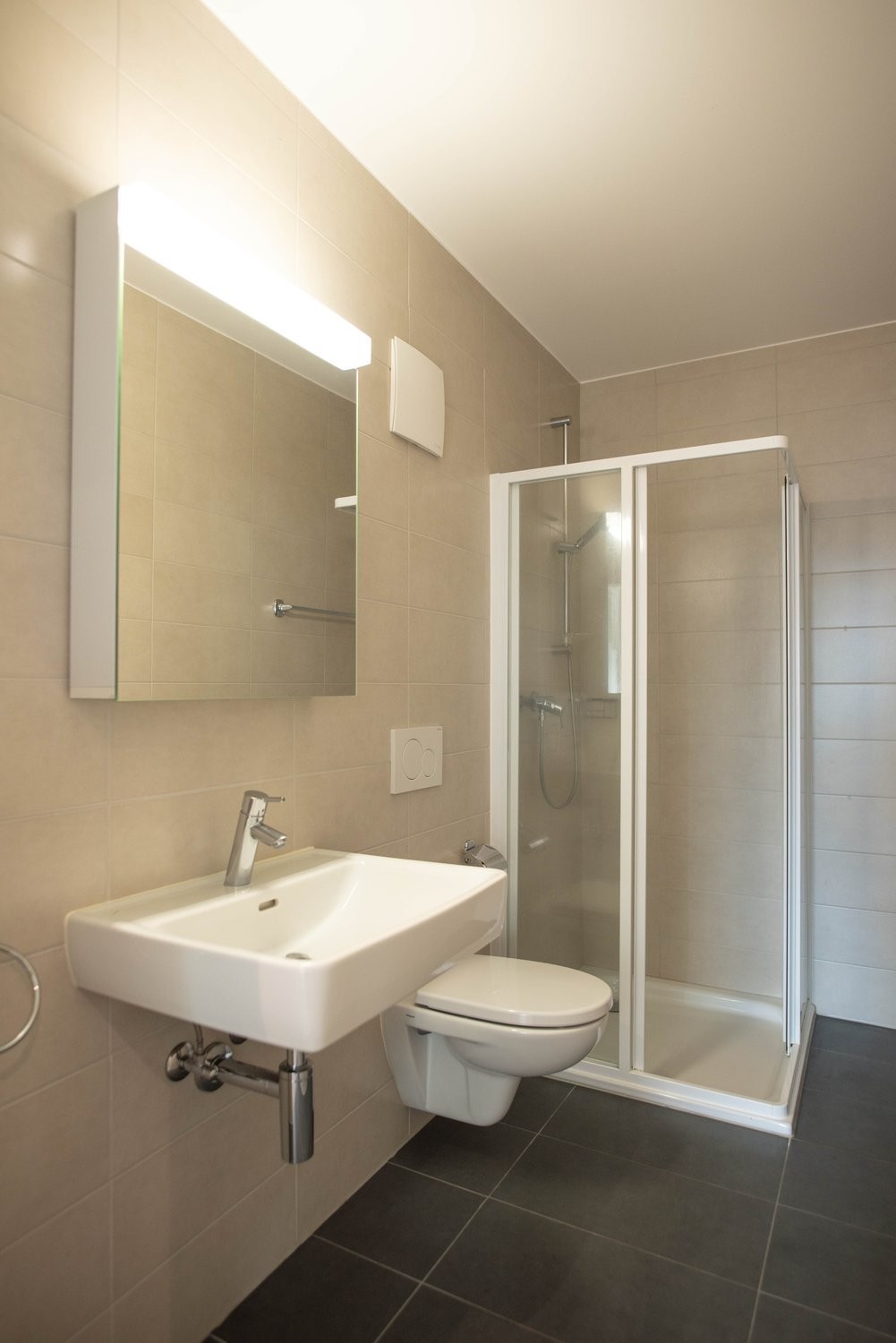 Il bénéficie également de deux chambres à coucher, d'une salle de bain avec baignoire munie d'un lave-linge et sèche-linge ainsi que d'une salle de douche.