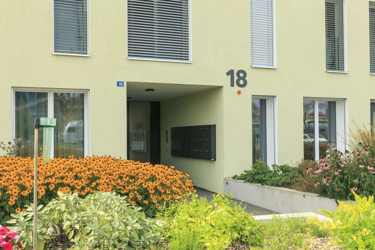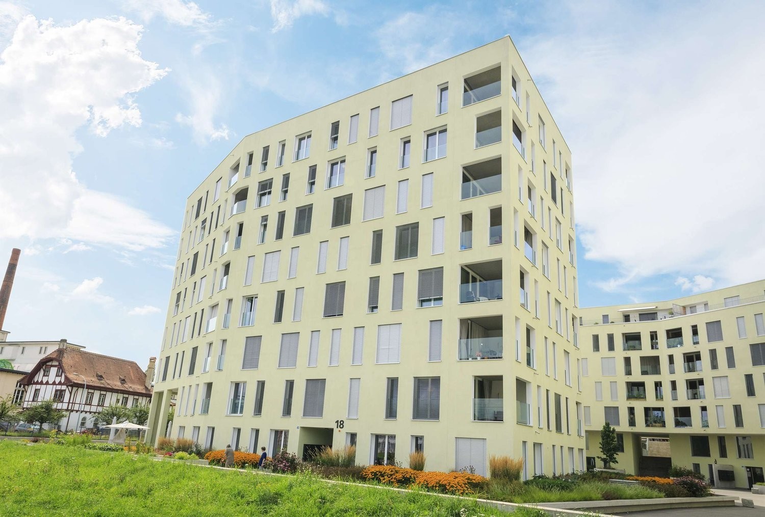 Cet immeuble à l'architecture contemporaine et orienté avec vue sur les Préalpes.
