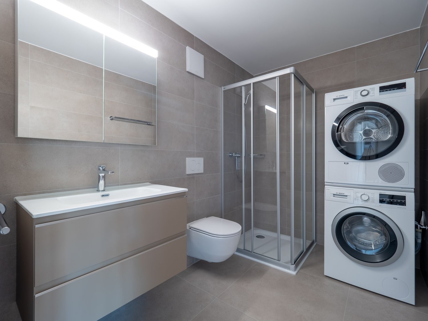 Le bien se compose également d'une salle de bains avec douche et colonne de lavage.