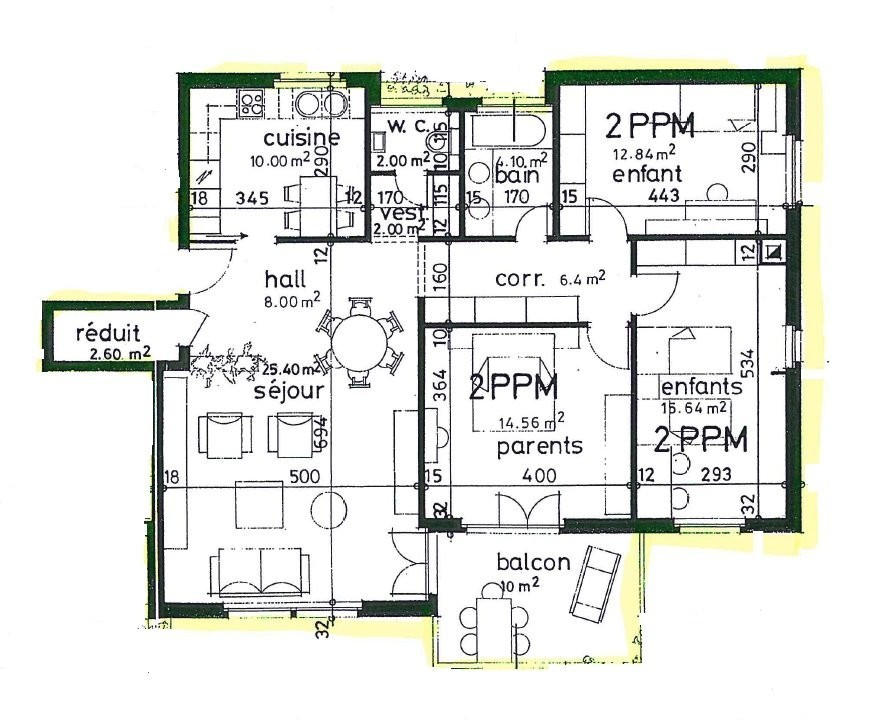 Ce logement d'environ 112 m2 dispose d'un hall d'entrée, d'une cuisine fermée habitable et agencée, de nombreuses armoires murales, de 3 chambres à coucher, d'une spacieuse salle de bains avec baignoire, d'un WC séparé, d'un réduit et d'un grand balcon.