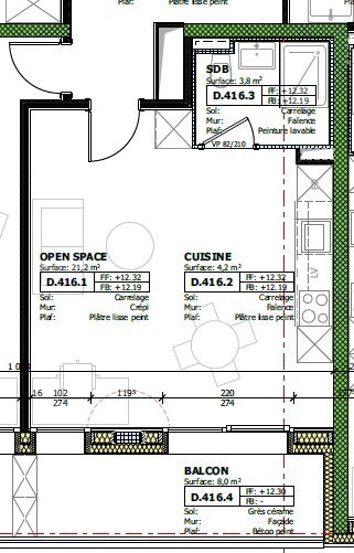 Ce logement dispose d?une cuisine équipée ouverte sur la pièce de vie.
