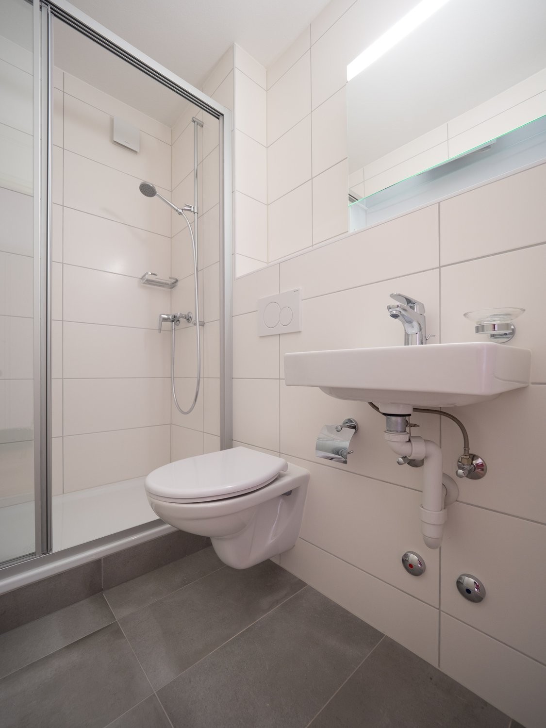 Il dispose également d'une grande chambre ainsi que d'une salle de bains avec douche ainsi que d'une machine à laver/sécher.