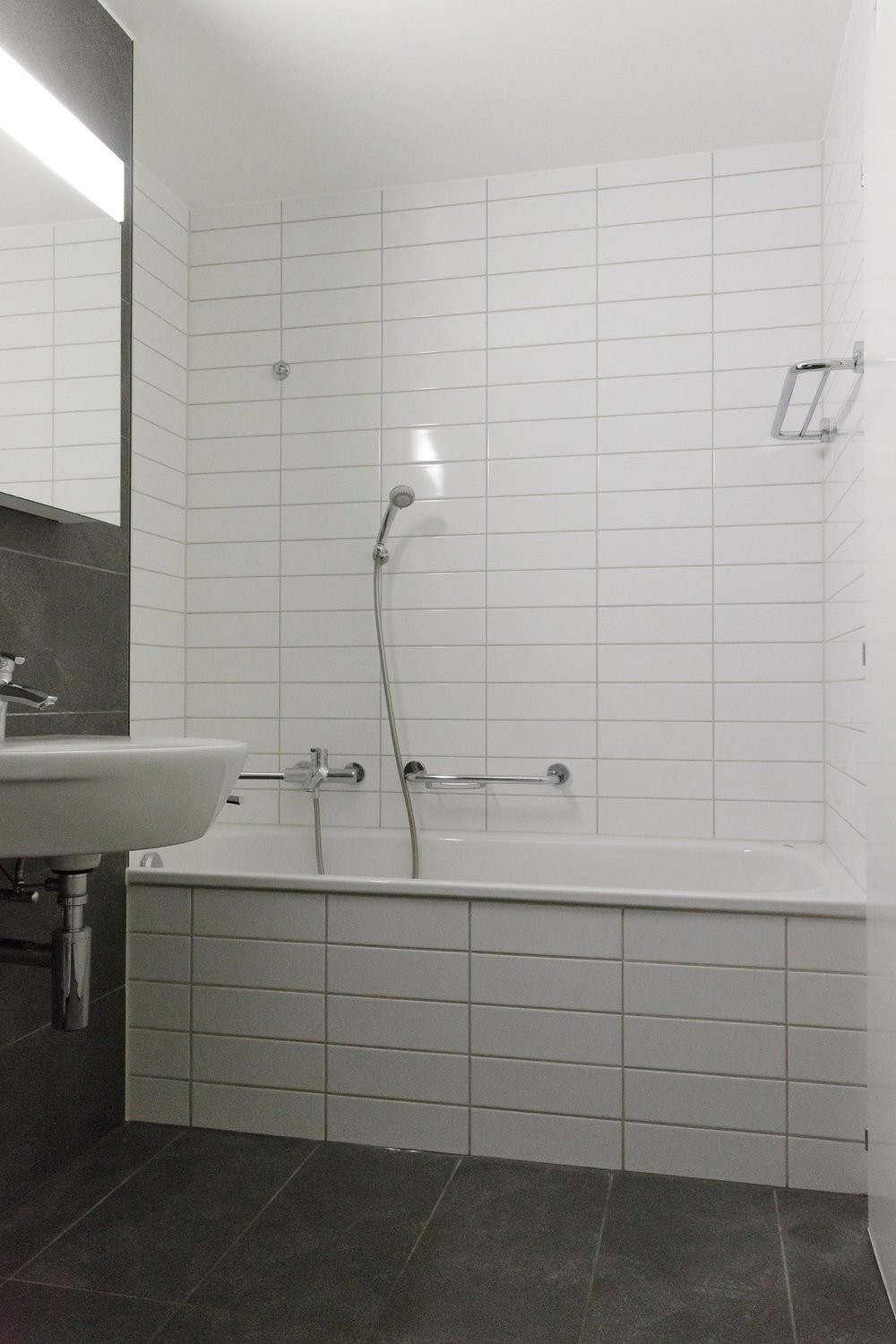 Il bénéficie également de WC séparé, d'une salle de bain avec baignoire et équipée d'une machine à laver/sécher le linge.
